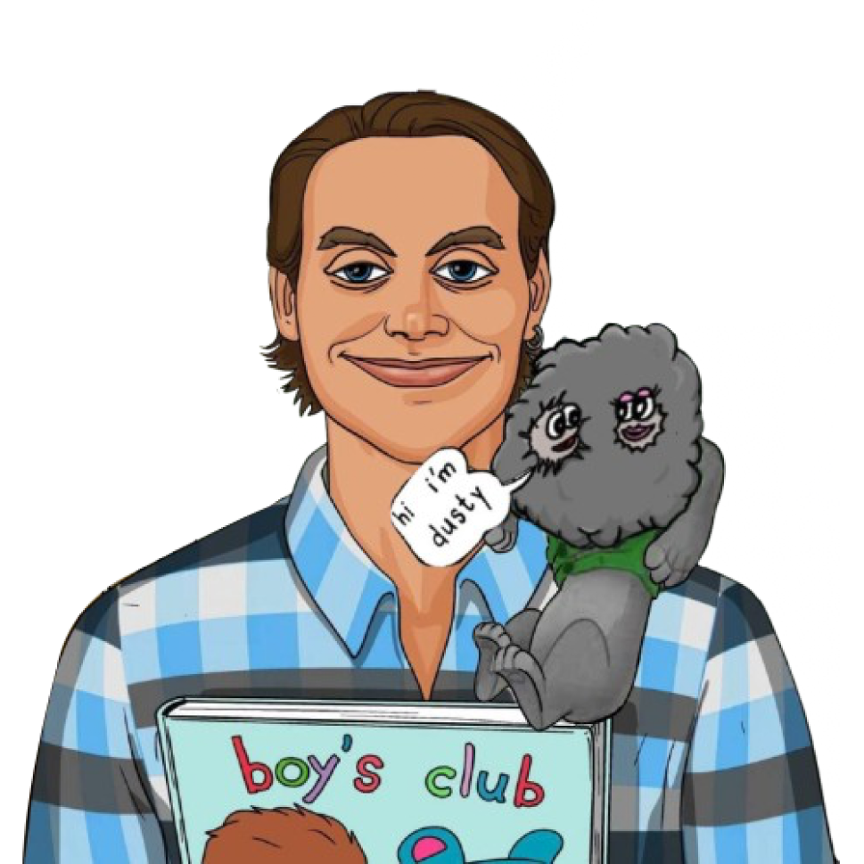 Dusty, a human character in Matt Furie’s Boys Club, is depicted as a disheveled and often troubled individual. He appears as a friend of the main characters, including Pepe the Frog, Andy the Worm, and Brett the Dog.